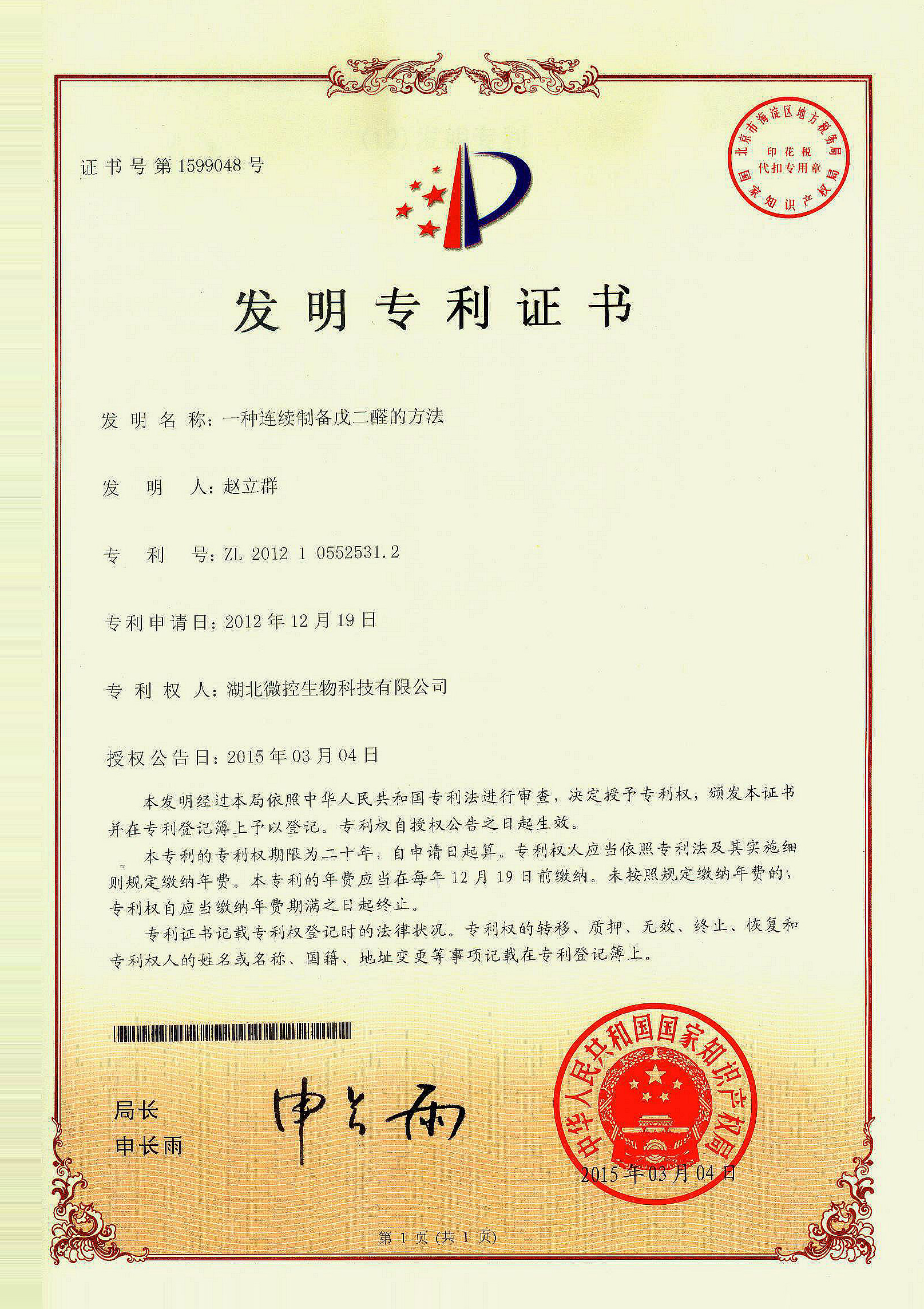 科技成果登記證書